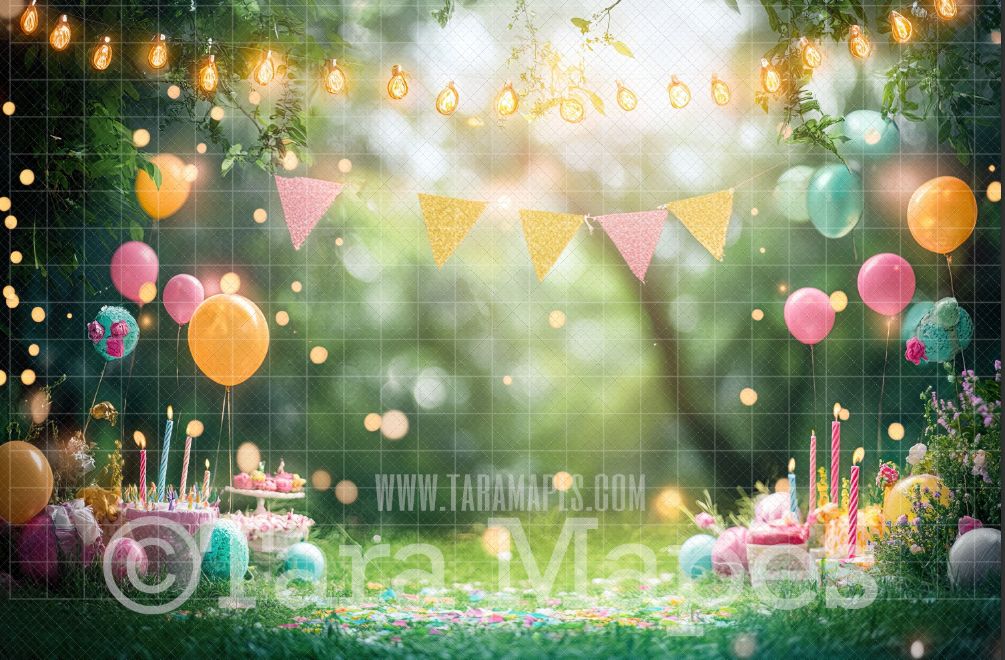 Painterly Birthday Banner Digital Background - Balloons and Banner Digital Background