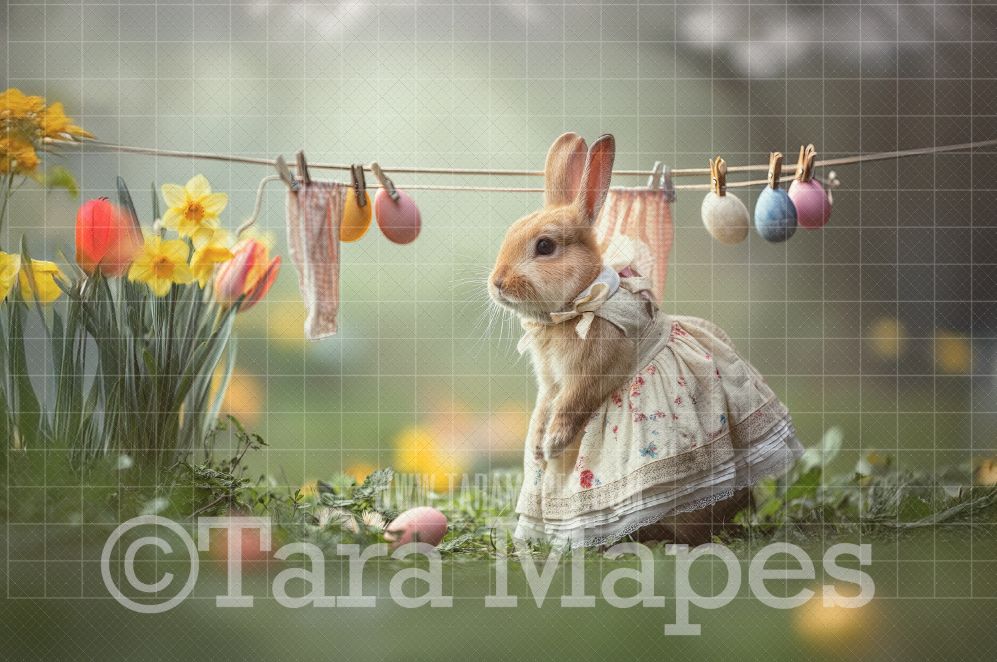 Easter Bunny Digital Background - Easter Bunny with Clothes Line Digital Backdrop